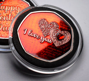 Happy Valentines Day 'I Love You' - 24ct Gold with Red Diamante Gemstone